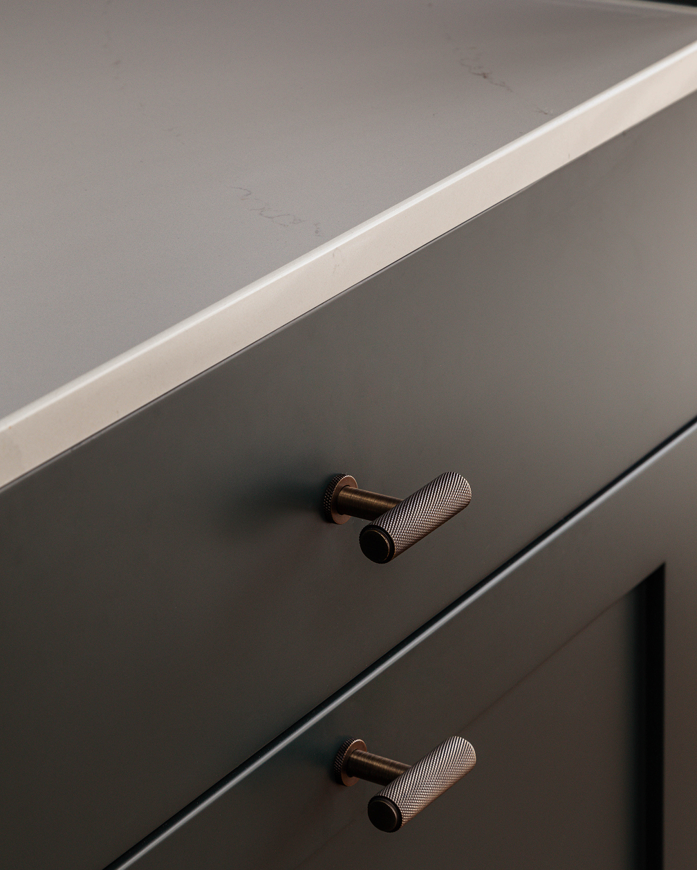 The Fenshaw redefines Shaker simplicity using contemporary proportions. Featuring ultra-matte lacquered cabinetry in warm neutrals and statement slatted or subtly grooved oak elements, this design balances crafted tradition with modern refinement through asymmetrical layouts, leather-wrapped cabinetry, and finely ribbed wood panels that add tactile depth.